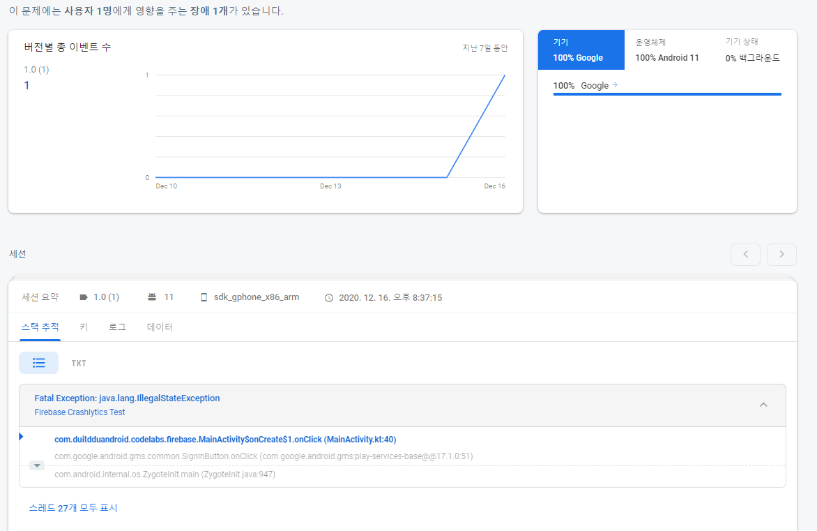 그리고 어느 부분에서 비정상 종료가 발생했는지, 각 비정상 종료마다 얼마나 발생되었고 얼마나 많은 사용자에게 발생했는지도 알 수 있다.