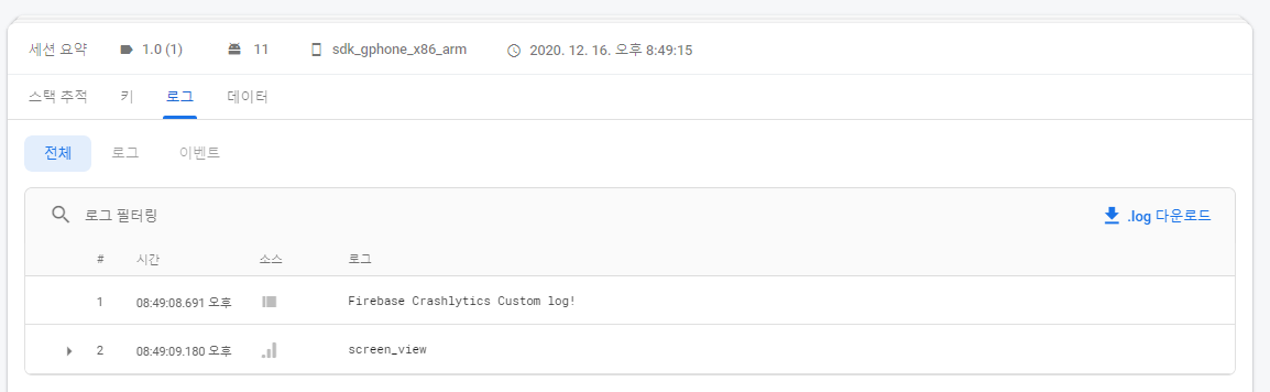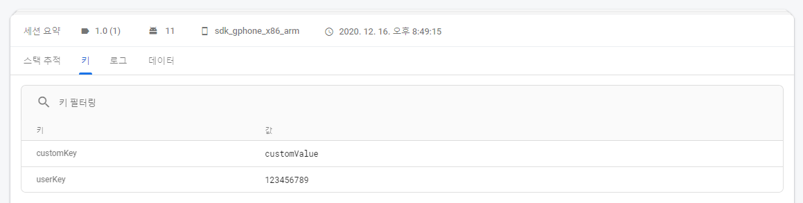 FirebaseCrashlytics 객체를 얻어온 후 setUserId 혹은 setCustomKey를 통해 크래쉬 로그에서 확인하고자 하는 값을 세팅한다. 특정 유저에 대한 로그를 확인하거나 앱에서 사용하는 값의 상태를 추적하고자 할 때 편리하게 사용할 수 있겠다.