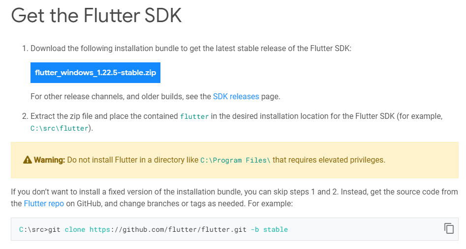 Flutter를 개발하기 위해선 SDK를 설치해야 한다.