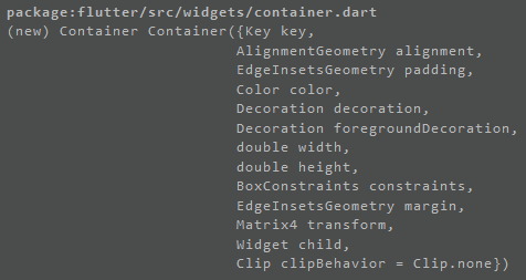 Windows/Android Studio 기준으로 Container에 컨트롤을 누르고 커서를 갖다대면 아래와 같은 생성자의 파라미터를 확인할 수 있다.