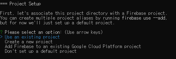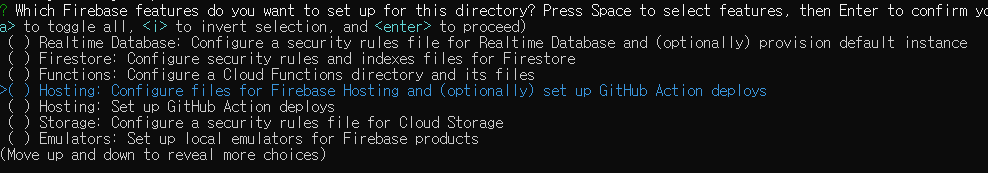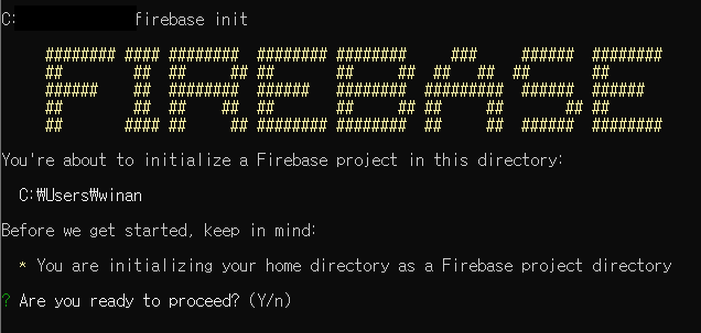 이제 'firebase init' 명령어를 수행할 것인데,