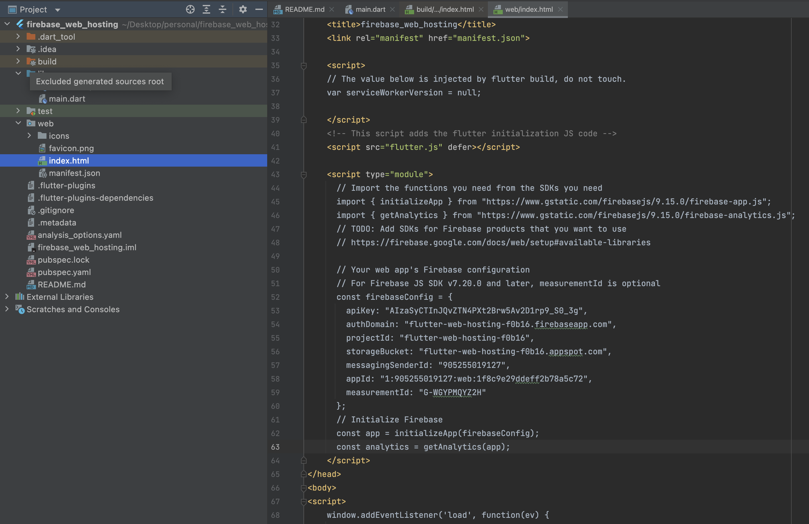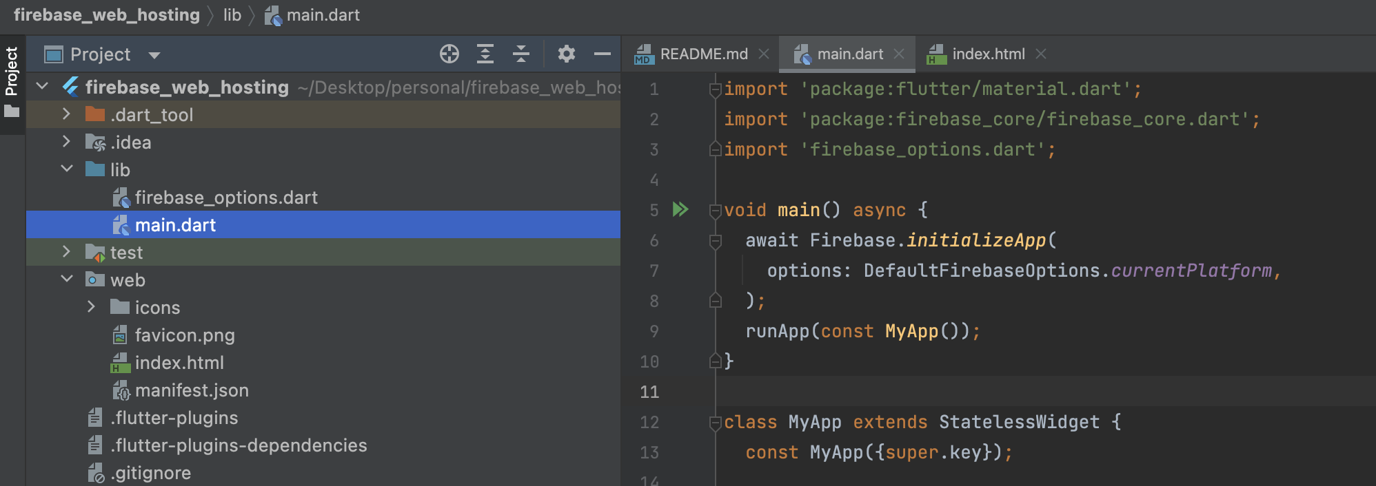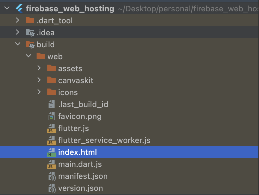 그리고 이미 Flutter 프로젝트의 빌드를 수행했기 때문에 build/web/index.html가 이미 존재한다.