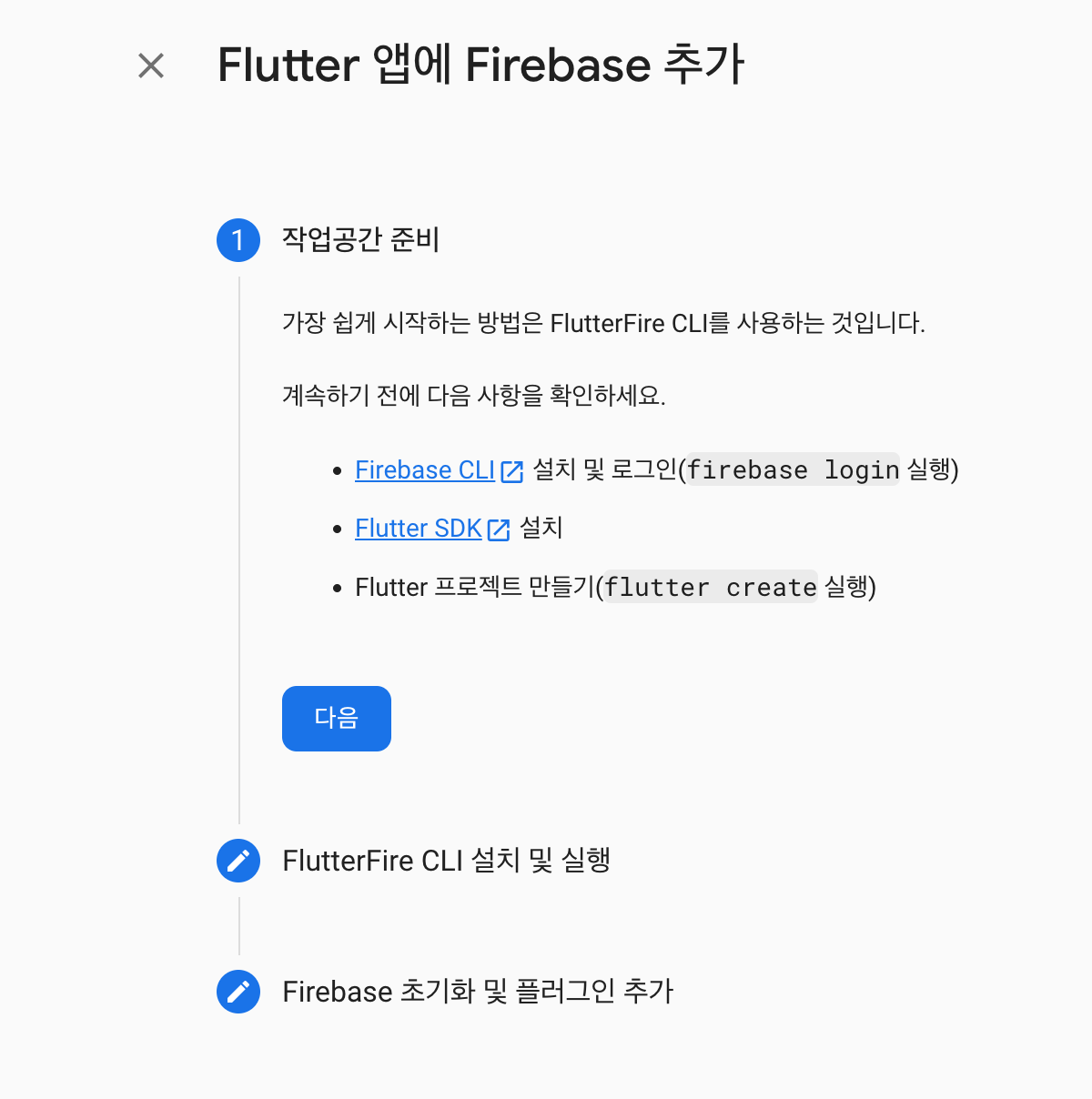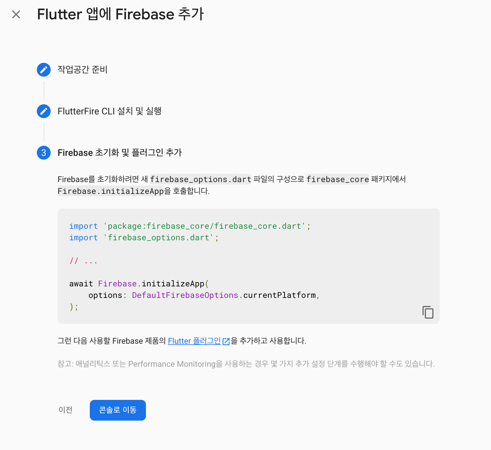 이제 Flutter 앱에 Firebase를 초기화해주는 작업이 필요하다.