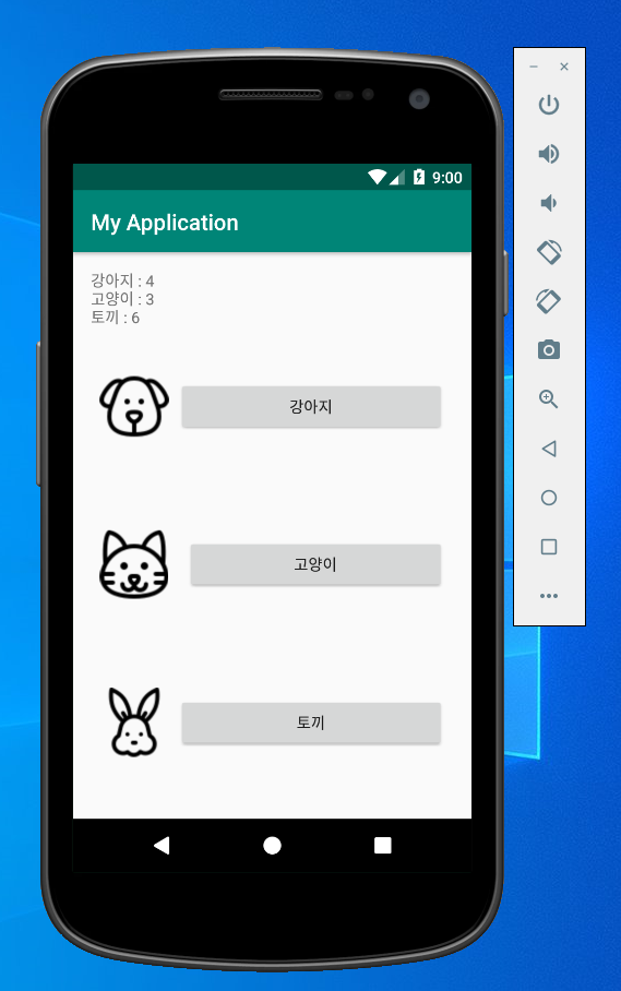 실행 후 각 버튼을 누르면 동일한 동작을 하는 것을 알 수 있다.