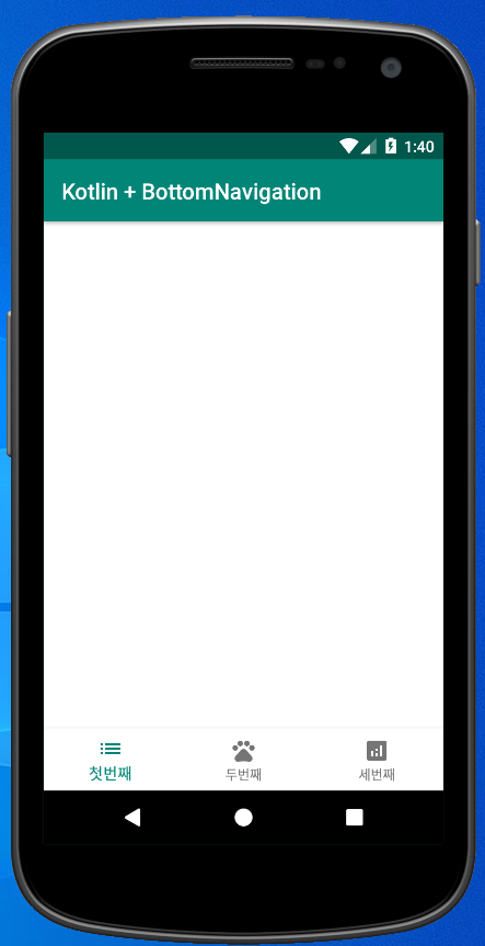 굉장히 간단하게 하단탭이 생성되었다. 아이템의 색깔을 변경하고 싶거나 하면 selector를 이용해야 한다. 이 예제에서는 생략한다.